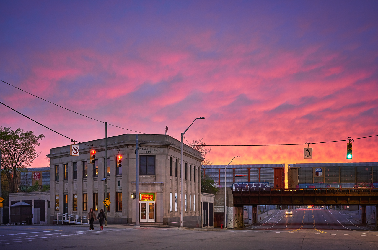 Vesper transforms a historic bank building in Detroit into a bar, wine shop, and bookstore focused on hospitality. Blending the bank’s original pink marble and plaster with warm woods, rich textures, and hand-painted accents, the space becomes a textural feast.